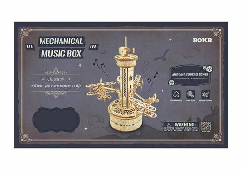 Hudobná skrinka Rolife Airplane Control Tower AMK41 je 3D drevené puzzle s mechanickým prevodom. Na rozdiel od vzhľadu iných bežných hracích boxov je tento navrhnutý s kombináciou riadiacej veže a troch otočných dvojplošníkov, ktoré sú inšpirované jazdou na rotujúcom lietadle v zábavnom parku. Vďaka vstavanému silovému pohybu sa môžu 3 dvojplošníky po navinutí otáčať s hudbou - It's A Small World. Postavte si toto jedinečné drevené 3D puzzle hracej skrinky vlastnými rukami a vychutnajte si šťastie, ktoré vám prináša.