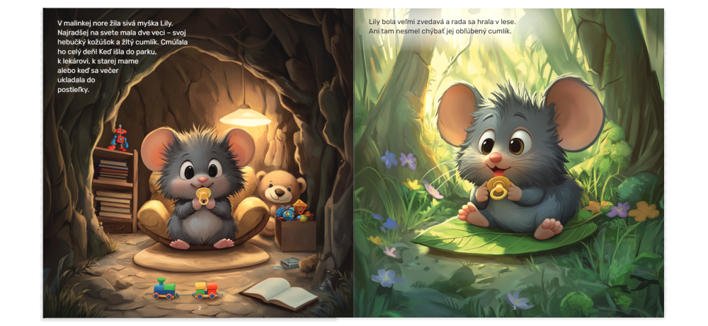 Myška Lily má svoj cumlík najradšej na svete. Je s ňou všade – v lese, na návšteve pri starkej aj večer v postieľke. Keď sa však dozvie, že malý medvedík