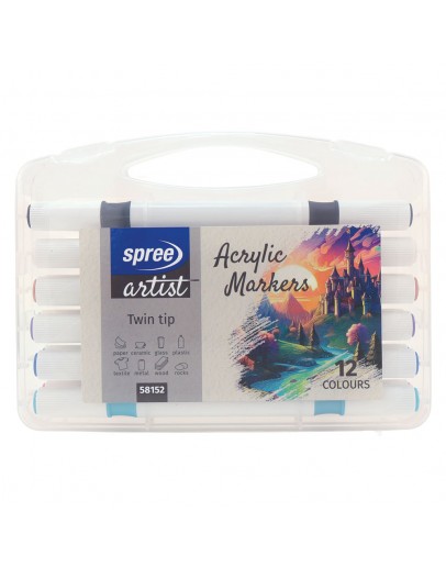 • Akrylové fixky s dvojitým hrotom, mäkký štetec / tenký hrot, 12ks