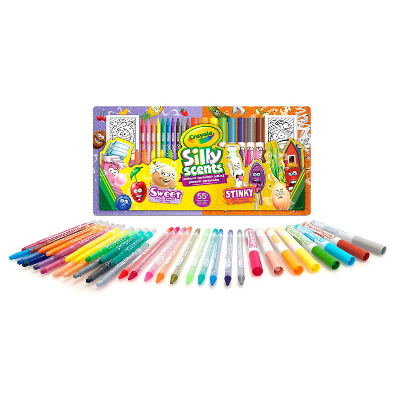 Obsahuje: 20 kartičiek na vyfarbenie, 8 voňavých fixiek, 10 voňavých twist-up ceruziek a 20 voňavých twist-up voskoviek.