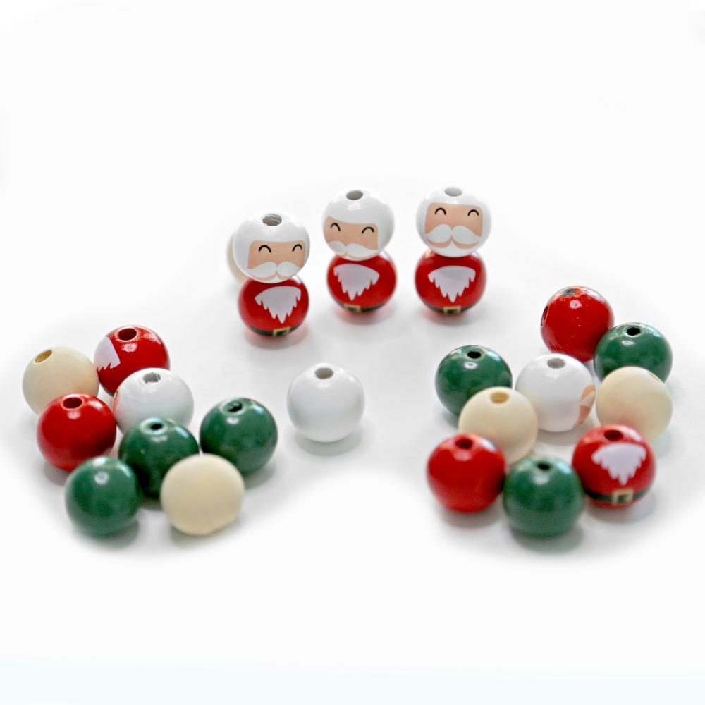 Vzory korálok sú: jednofarebné prírodné, biele a zelené, ako aj biele so vzorom tváre Santu a červené so vzorom brady a opasku.