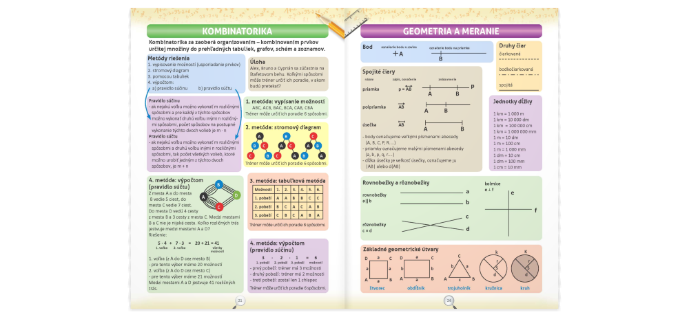 Užitočný pomocník Matematika ZŠ do vrecka obsahuje prehľad matematických pojmov a vzťahov, ktoré sa učia žiaci na základných školách - množiny i rímske číslice, prirodzené i desatinné čísla, mocniny a odmocniny, geometria, ale i pravdepodobnosť a štatistika. Celé učivo je stručne a prehľadne zhutnené do brožúrky formátu A6.