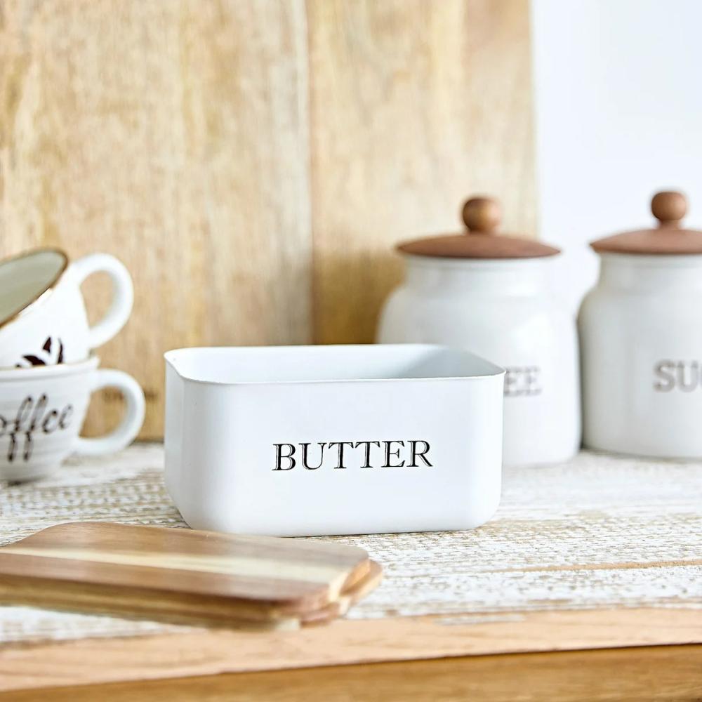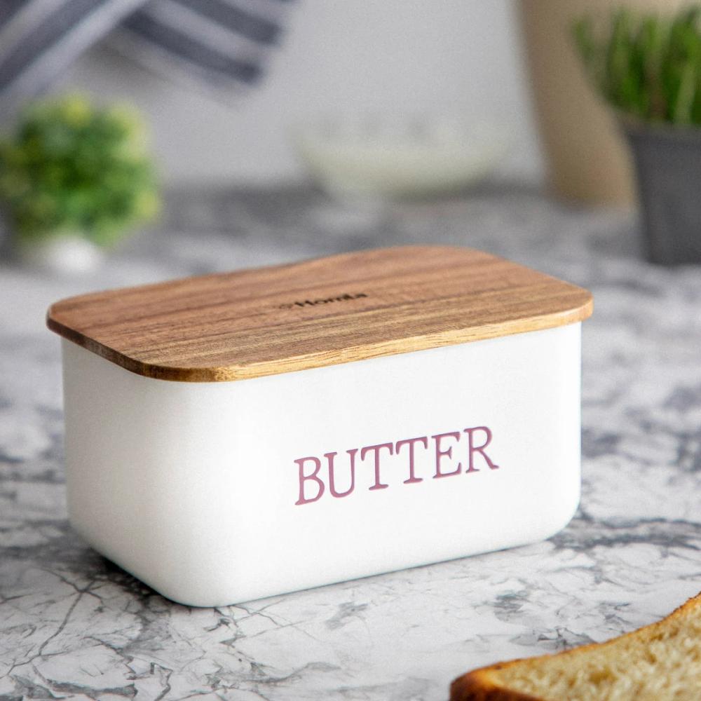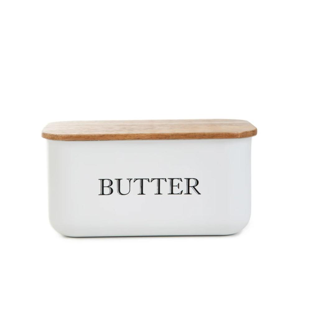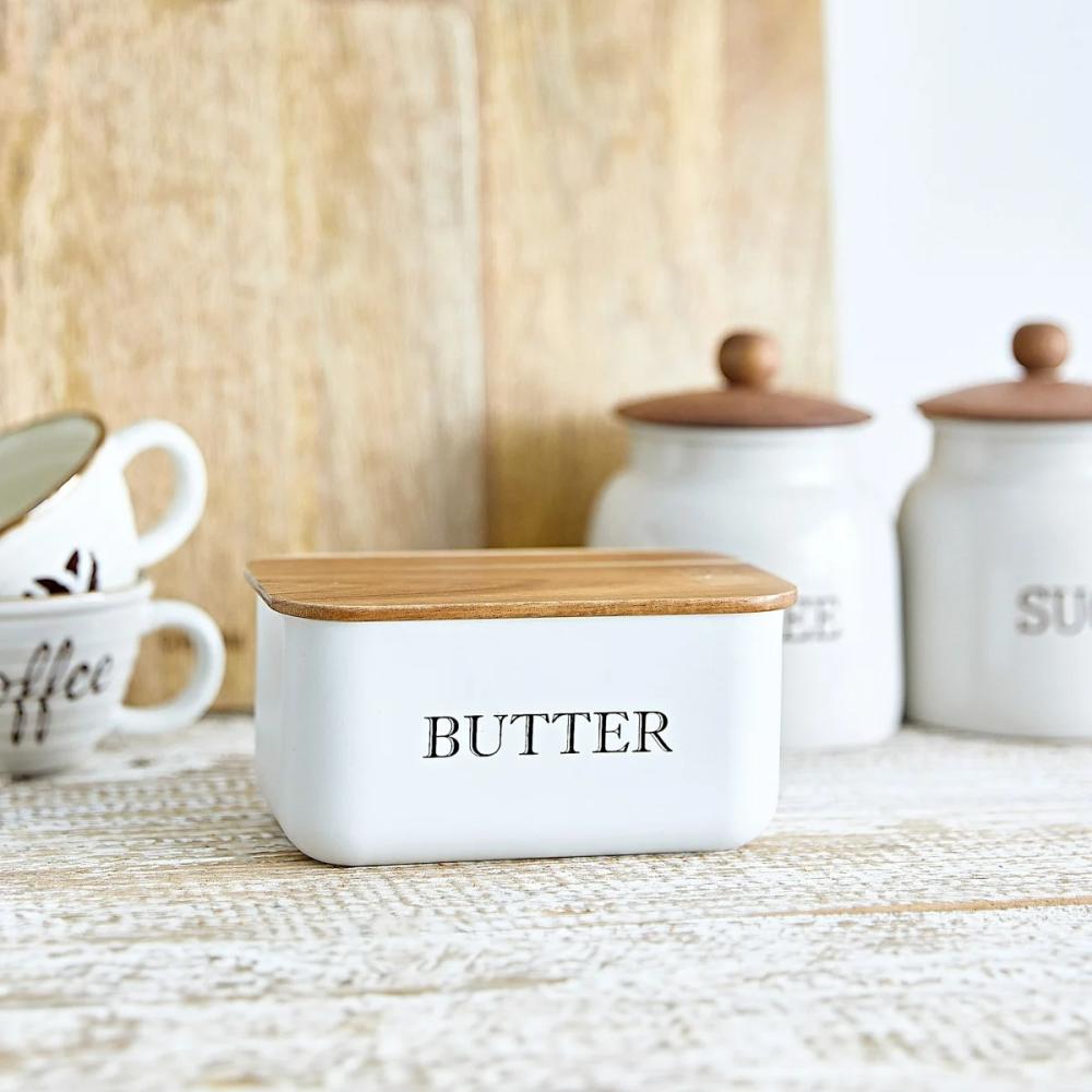 • Miska na maslo | AVILA | biela s akáciovým viečkom | 15x10x7 cm