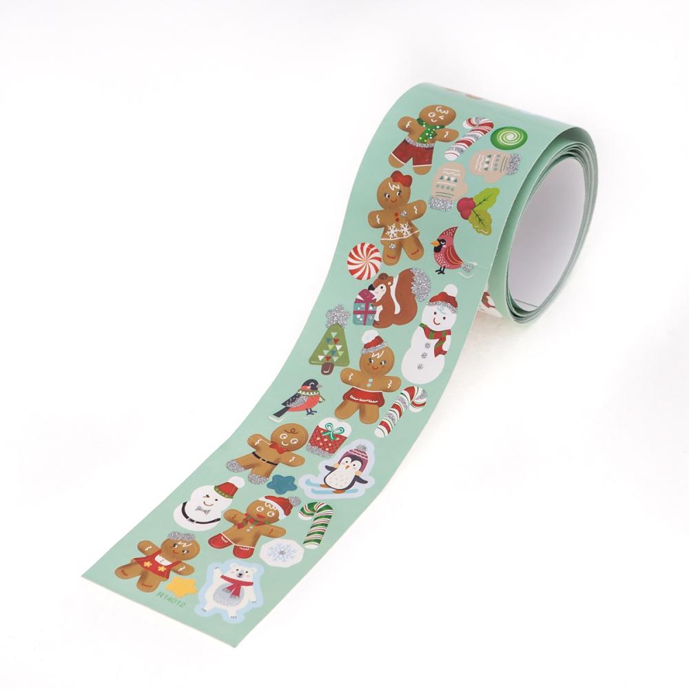Okrem perníkových motívov obsahuje rolka aj gule, vianočné stromčeky, darčeky, sladkosti a snehuliakov. Niektoré nálepky majú strieborné, trblietavé ozdoby, ktoré sa krásne trblietajú na svetle.