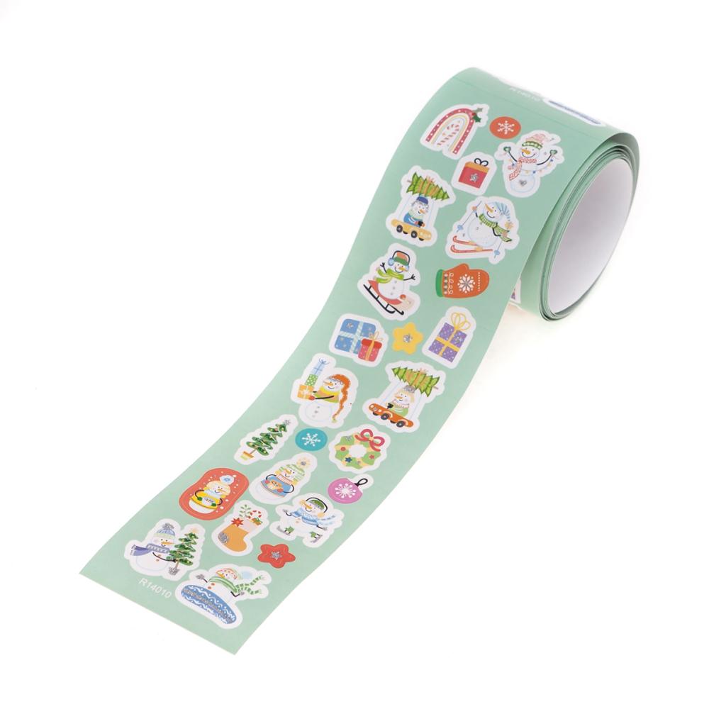 Okrem motívov snehuliakov obsahuje rolka aj gule, vianočné stromčeky, darčeky, sladkosti a snehuliakov. Niektoré nálepky majú strieborné, trblietavé ozdoby, ktoré sa krásne trblietajú na svetle.