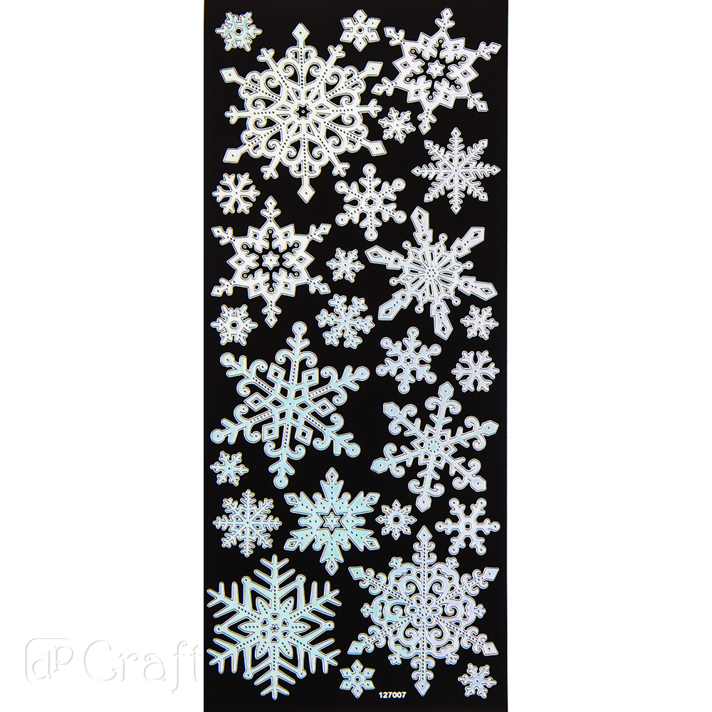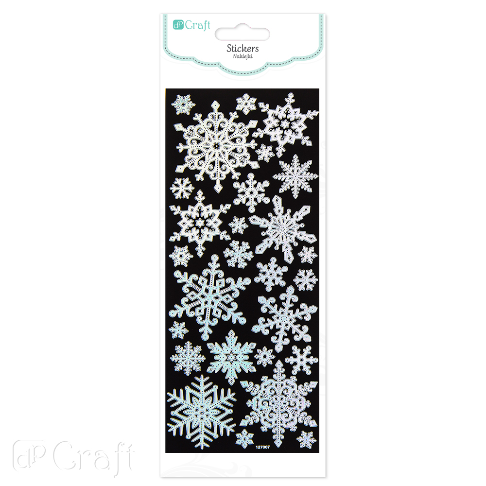 Trblietavé nálepky "Snehové vločky" s holografickým efektom sú ideálne na výrobu pohľadníc, scrapbooking a bytové dekorácie. Obohacujú a zdôrazňujú elegantný charakter projektov a dodávajú im jedinečné čaro. Veľkosť hárku: 10 x 24 cm
