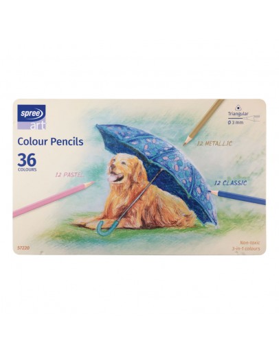 • Pastelky 36ks, pastelové/metalické/klasické x12, trojhranné, v plechu