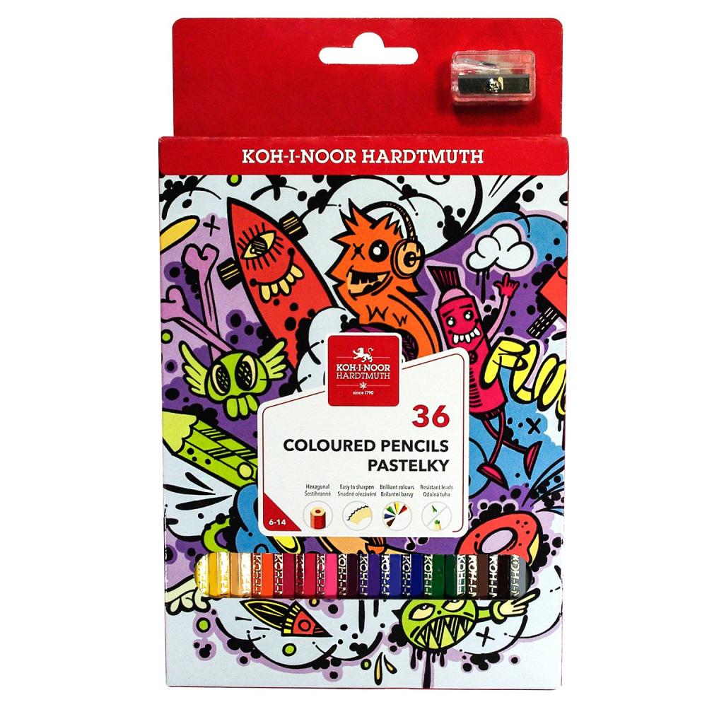 Sada šesťhranných farebných ceruziek. Ceruzky majú drevený obal a sú balené v sadách po 36 odtieňov v kartónovej škatuľke + strúhadlo je súčasťou balenia. Ceruzky zanechajú intenzívnu stopu a sú vhodné pre školské aj univerzálne použitie.