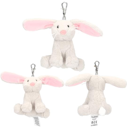 Roztomilé malé prívesky v tvare zajačika vyrobené z plyšu majú dlhé uši a kovovú karabínku. Na pripevnenie na tašky alebo iné veci. Super roztomilý pútač pozornosti! 3 rôzne farby zajačika: fialová, svetlosivá, svetloružová. Materiál: 100 % polyester