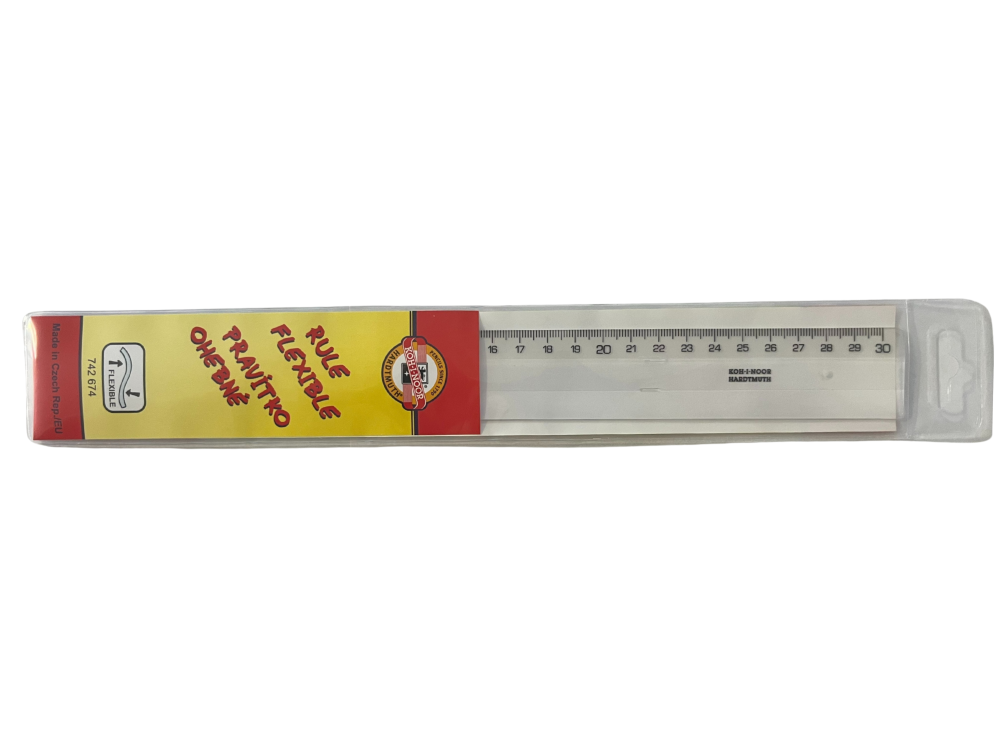 Pravítko KOH I NOOR 30 cm transparentné, nezlomiteľné je jednoduchý, ale spoľahlivý rýsovací nástroj navrhnutý pre školské, kancelárske aj hobby použitie. Jeho telo je vyrobené z číreho priehľadného plastu (tzv. styroluxu), čo umožňuje vidieť podložku pod pravítkom a presne sledovať trasu čiary.