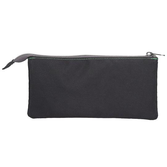 So zelenými detailmi a zelenou podšívkou, hlavným zipsom navrchu a tromi samostatnými priehradkami vo vnútri, jednou s ďalším zipsom.