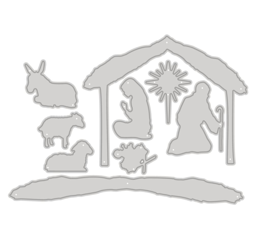 Sada 9 vyrezávacích šablón, ktoré vám umožnia vytvárať sviatočné návrhy s náboženskou tematikou. Nájdete tu vianočnú hviezdu, betlehem, Svätú rodinu, jasličky a zvieratká.