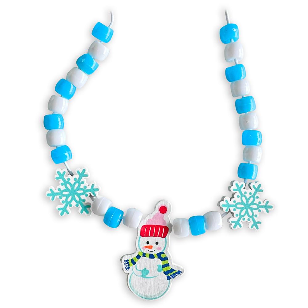 Kreatívna sada na výrobu zimného náhrdelníka so snehuliakom. Použite priložený vzor alebo si vytvorte vlastný jedinečný dizajn!