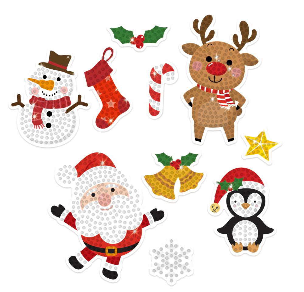 Sada diamantových vyšívacích nálepiek „Veselé Vianoce“ pozostáva z 10 nálepiek s priehľadnou farebnou fóliou, ktoré sa dajú ozdobiť farebnými diamantmi. Veľkou výhodou je malá veľkosť nálepiek. Vytvorenie jedného prvku zaberie málo času, čo deti povzbudzuje k tvorbe ďalších návrhov!