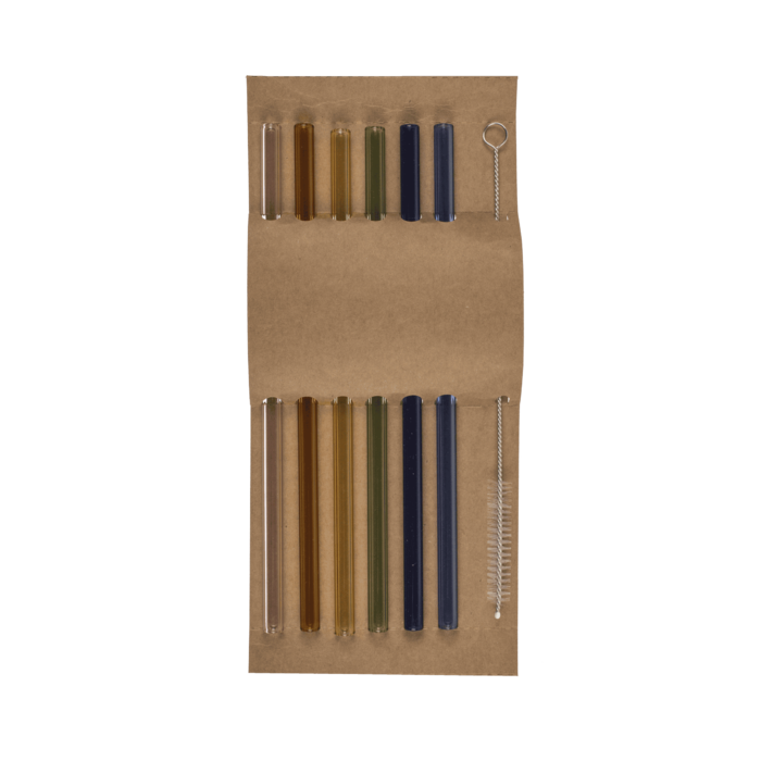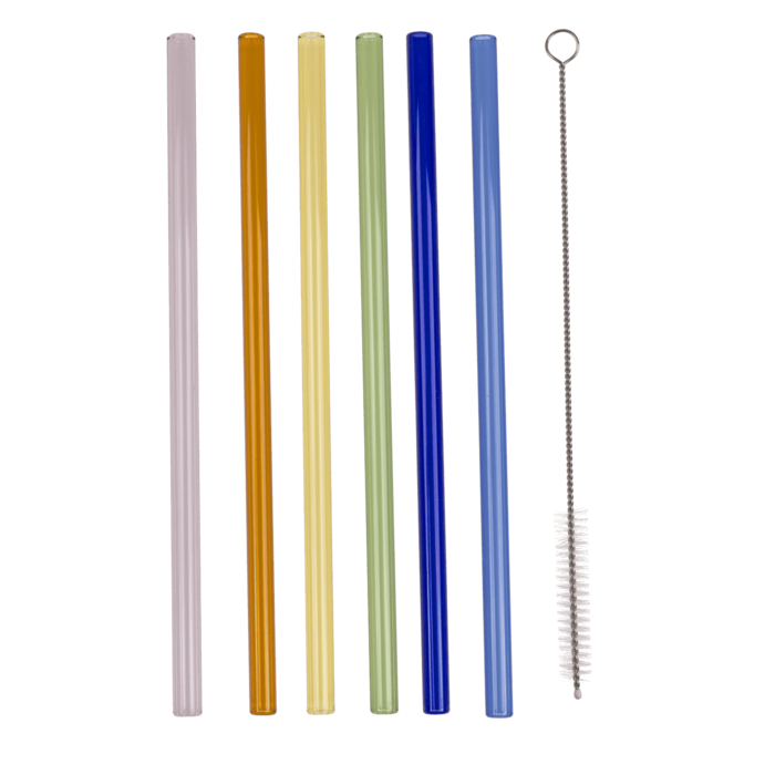 Sklenené slamky na pitie s čistiacou kefkou, farebné, 6ks