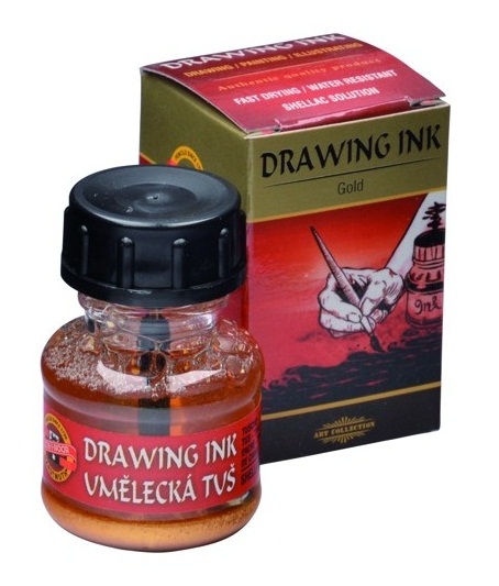 Šelakový atrament je tónovaný jemnými pigmentovými pastami. Svetlostálosť a krycia schopnosť jednotlivých odtieňov sú uvedené na obale. Atrament je vhodný na maľovanie a kreslenie perom. V závislosti od techniky kreslenia sa atrament nanáša perom alebo štetcom. Po zaschnutí vytvára vodeodolný film. Pred použitím riadne pretrepte. Chráňte pred mrazom. Obsahuje dekahydrát tetraboritanu sodného. Balenie: 6ks