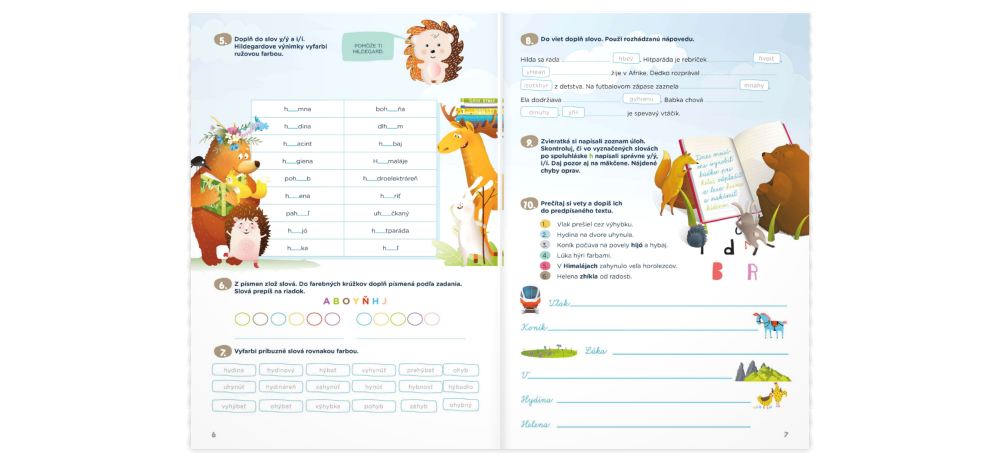 Zošitom sprevádzajú veselí ježkovia, ktorí žiakov naučia pravopisné výnimky – ide o slová väčšinou cudzieho pôvodu, v ktorých po tvrdej spoluhláske nasleduje mäkké i/í a po mäkkej spoluhláske sa v nich píše tvrdé y/ý. Rozmanité úlohy (doplňovanie, vymaľovávanie, prepisovanie, spájanie, krúžkovanie či dokonca vystrihovanie) sú vhodné na precvičovanie v rámci školského vyučovania, ale aj na individuálne upevňovanie vedomostí v domácom prostredí.