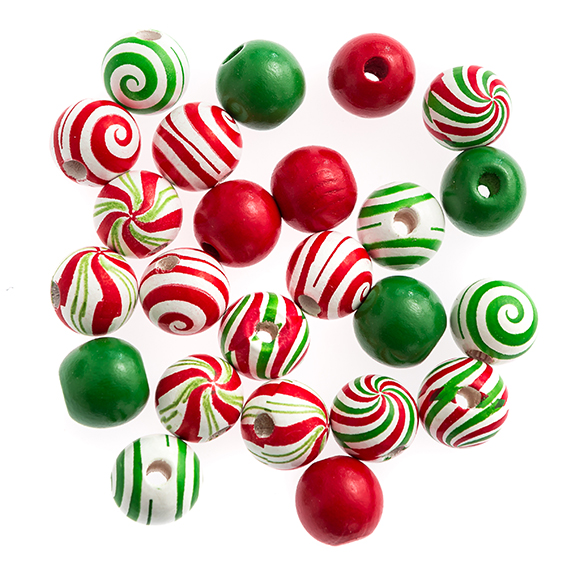 Sada obsahuje korálky v 6 farbách: červená, zelená a 4 v červeno-zeleno-bielych vzoroch.