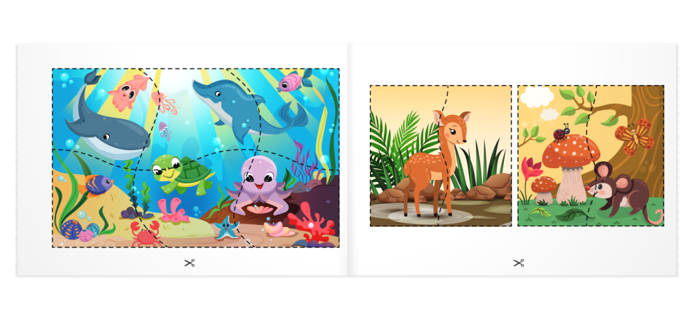 Práca so zošitom je jednoduchá – stačí vytrhnúť hárok, vystrihnúť obrázky podľa naznačených čiar a nalepiť ich na papier (odporúčaný formát A4/A3). Vystrihnuté a nenalepené objekty taktiež môžu poslúžiť ako papierová skladačka, s ktorou sa dieťa môže kedykoľvek zahrať.